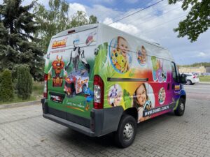 Realizacja ta potwierdza nasze doświadczenie w zakresie oklejania samochodów firmowych, reklamy mobilnej dla marek dziecięcych oraz brandingu pojazdów, dostarczając trwałe i efektowne rozwiązania wizualne.