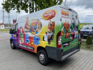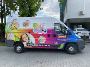 Efektem końcowym jest wyróżniająca się reklama na samochodzie, która skutecznie przyciąga uwagę dzieci i dorosłych, zwiększa rozpoznawalność marki Dumel Discovery oraz wspiera działania marketingowe podczas codziennego użytkowania pojazdu.