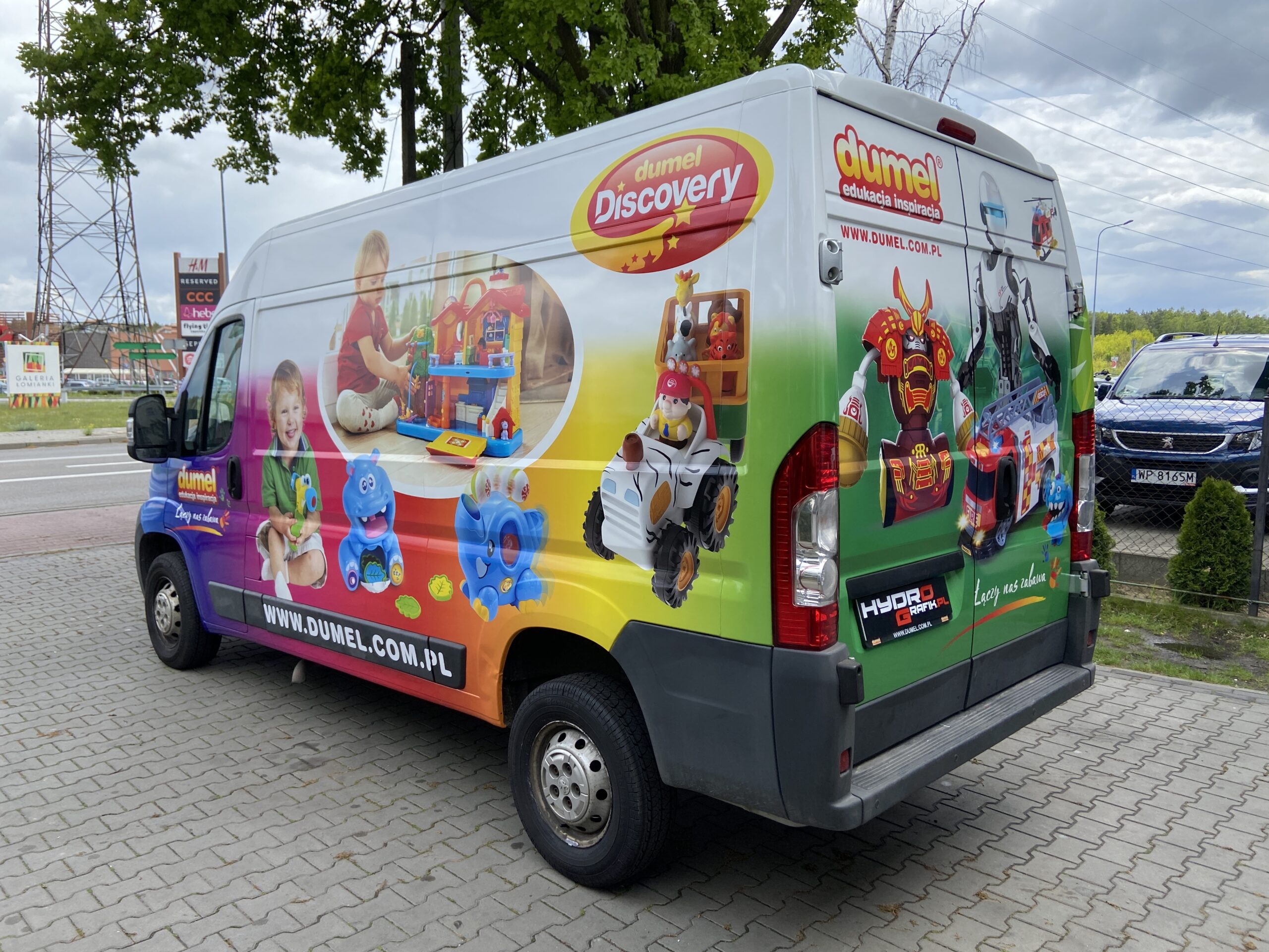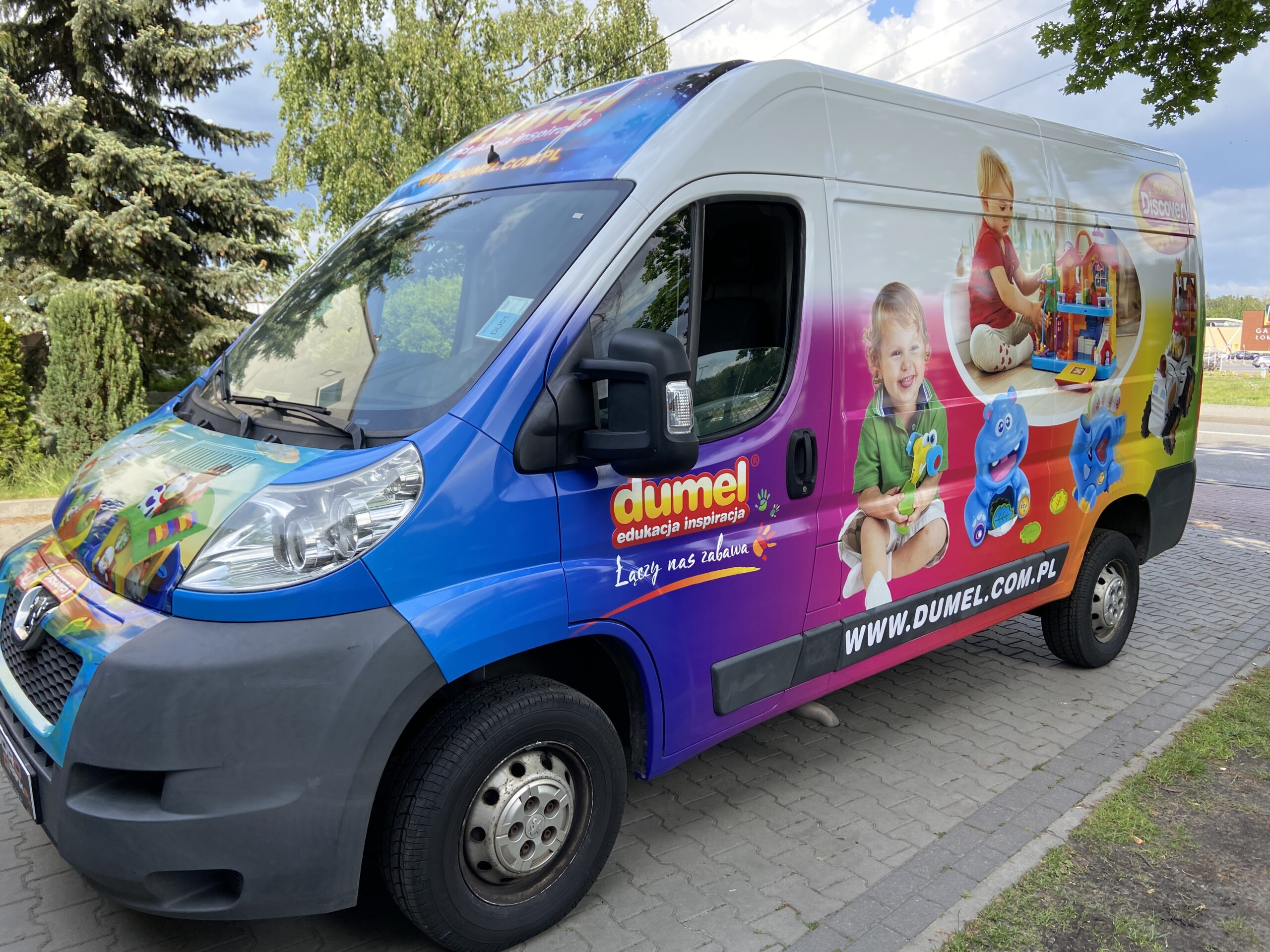 Dla marki Dumel Discovery wykonaliśmy kompleksowe oklejanie samochodu firmowego, tworząc efektowną i doskonale widoczną reklamę mobilną skierowaną do branży dziecięcej i edukacyjnej. Projekt graficzny został zaprojektowany w oparciu o identyfikację wizualną Dumel Discovery, podkreślając charakter marki: edukację, zabawę i inspirację.